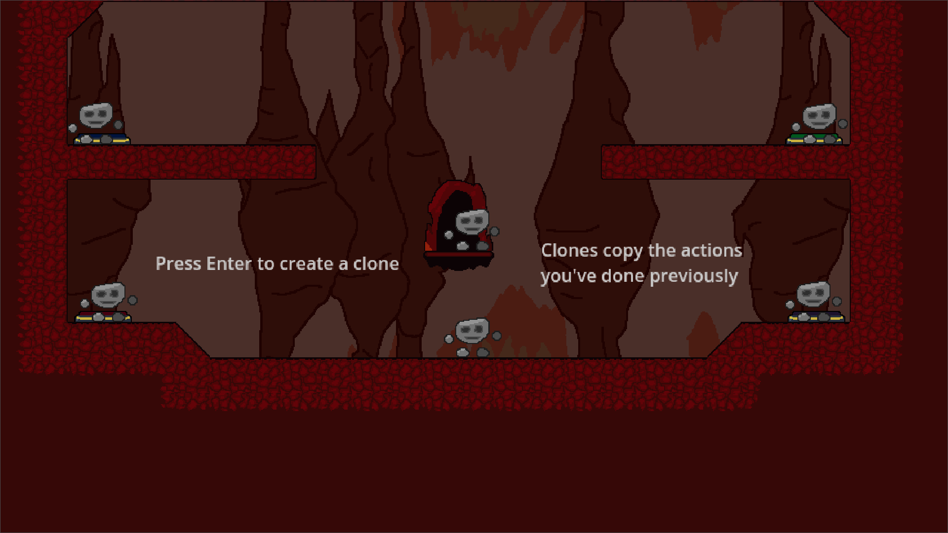 Time Loop is a game about solving puzzles and cloning rocks! Solve platforming problems through planning your moves ahead and use your past clones to progress. Can you solve the puzzles and escape the cave?